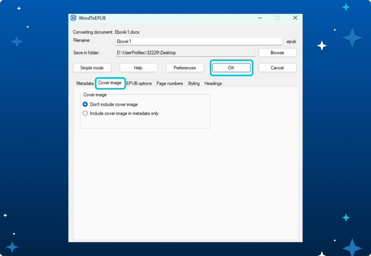 - Cover Image : กดเลือก Don’t include cover image เมื่อไม่ต้องการใส่ภาพปก (ทางระบบ Naiin จะใส่ภาพปกให้อัตโนมัติ)