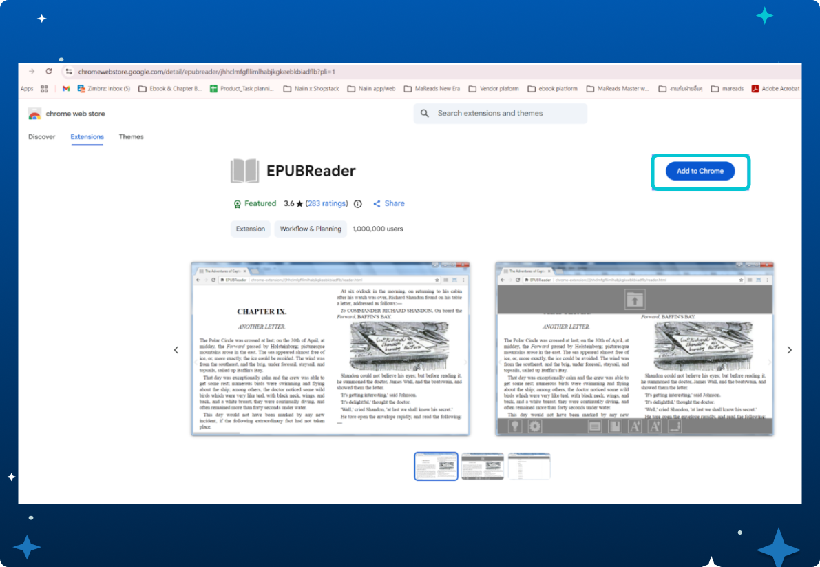 6.4 ตรวจสอบไฟล์ Epub นอกจากโปรแกรม WordtoEpub แล้ว สามารถใช้โปรแกรมอ่าน Epub อื่นๆ เช่น Calibre หรือเพิ่ม EPUBReader (Extension) ซึ่งเป็นส่วนขยาย