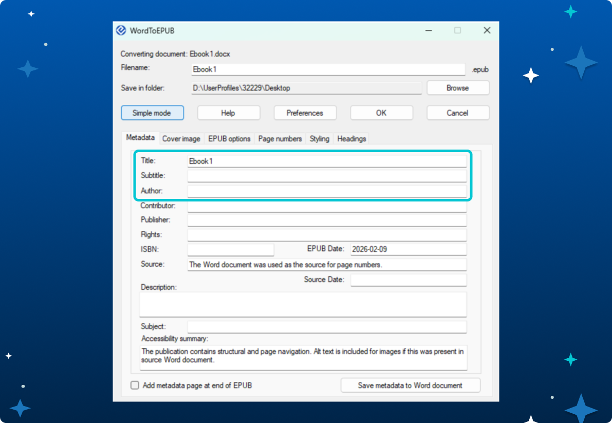 - Title/Author : ใส่ชื่อเรื่องและชื่อผู้เขียน