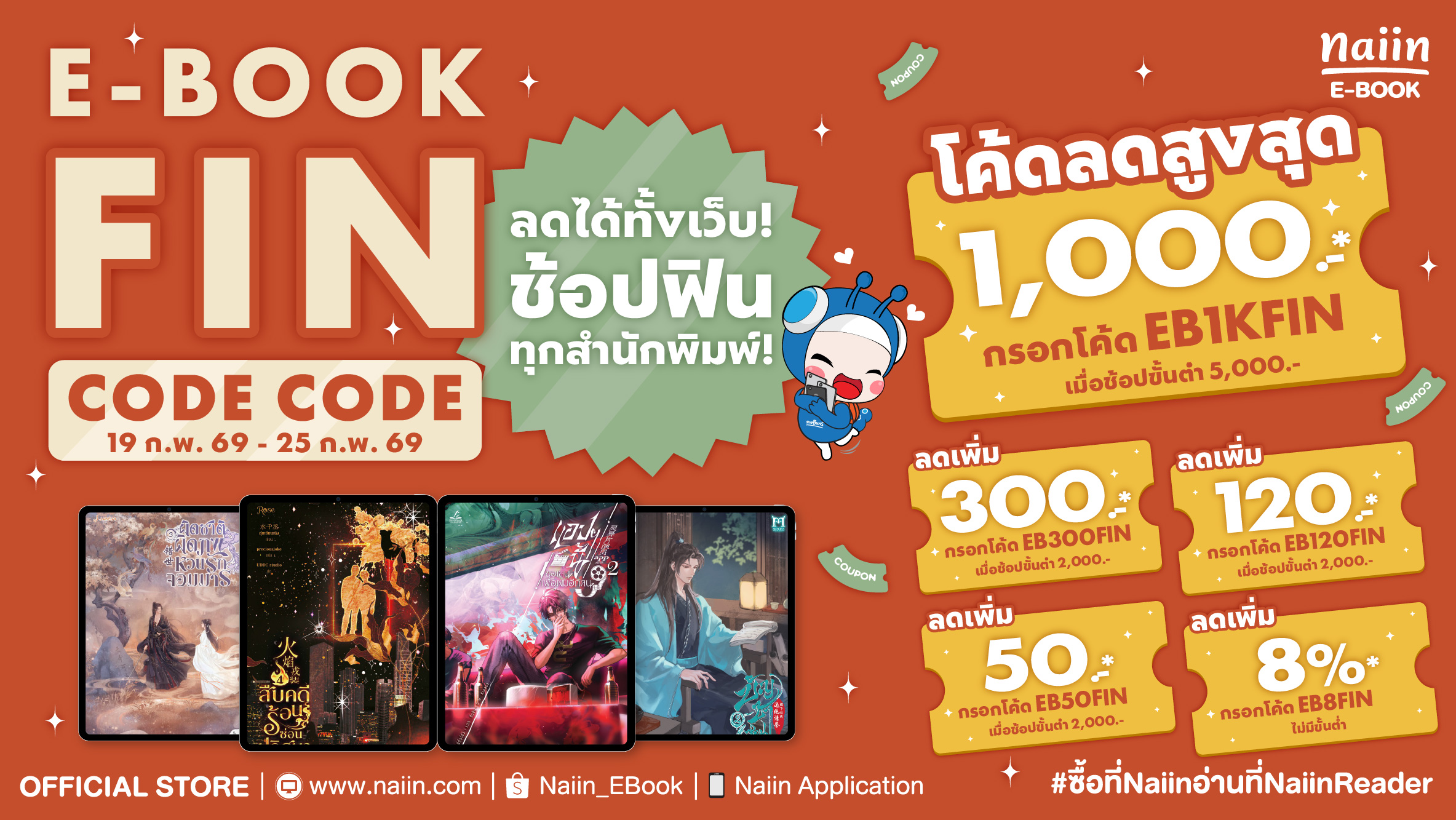 6. ผู้ใช้ระบบ iOS สามารถใช้ส่วนลด E-Book ได้ที่เว็บไซต์ naiin.com เท่านั้น!